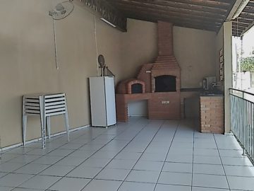 Condomínio com salão de festas com churrasqueira e forno de pizza; playground.