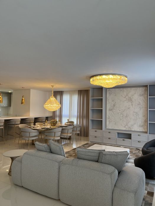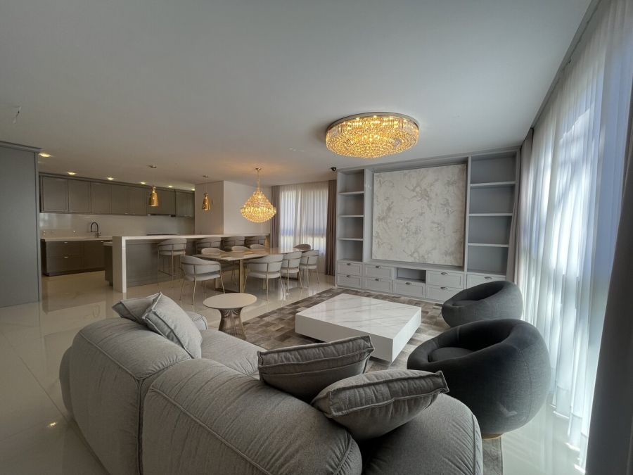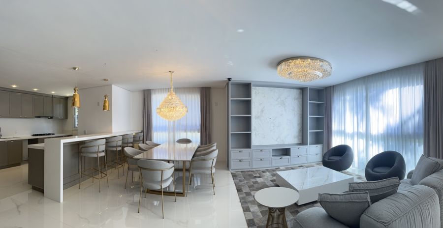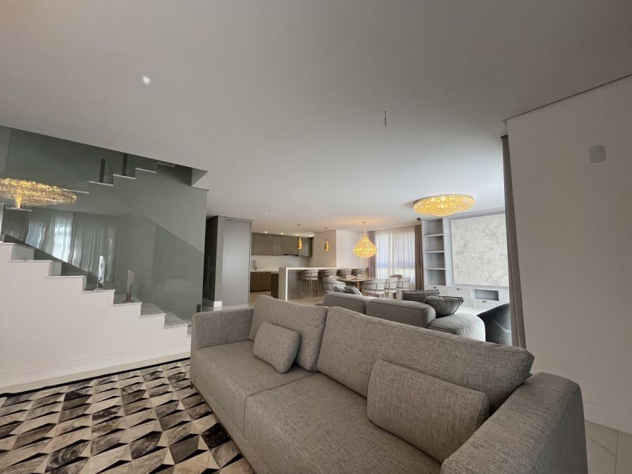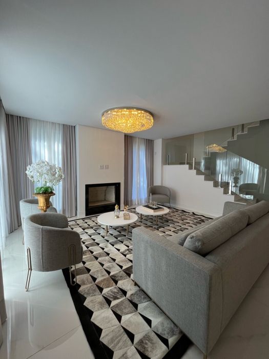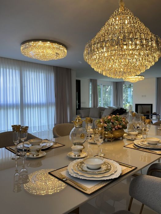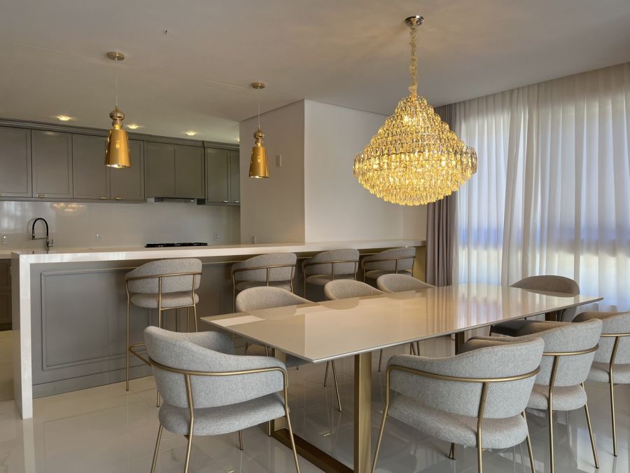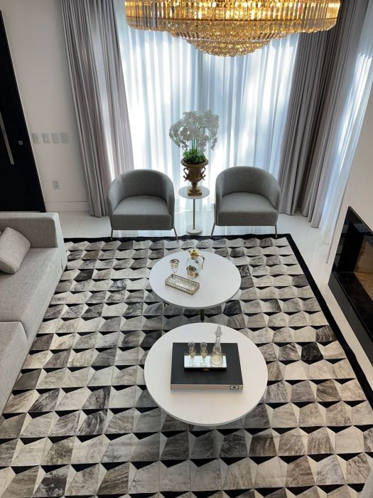 Residência mobiliada na sala, cozinha e suíte máster, alto padrão, com 371 mts de área privativa, terreno com área total de 800 mts, cozinha americana com churrasqueira mobiliada, sala de tv e jantar, living com lareira, 05 suítes, sendo duas no térreo e sendo a máster com closet, lavabo, lavanderia, garagem coberta para dois veículos com espera para carregador de carro elétrico.