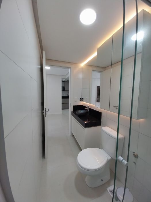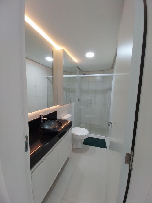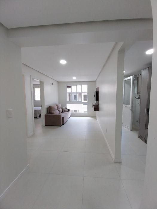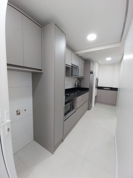 Apartamento 4º andar, sala para dois ambientes, cozinha com churrasqueira e armários modulados, fogão, forno e microondas, 01 dormitório com armário e cama de casal, área de serviço com sacada; 01 banheiro social..Piso em porcelanato, aquecimento de água nas torneiras. 01 vaga na garagem coberta em local determinado.