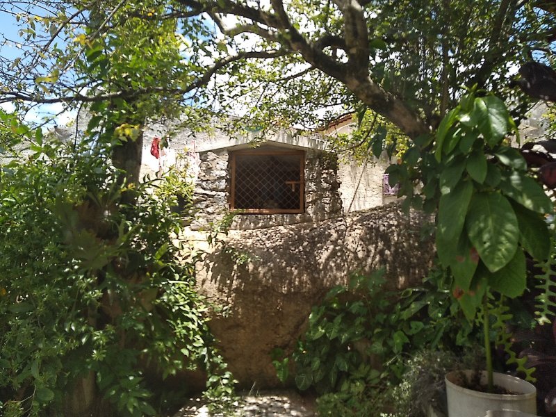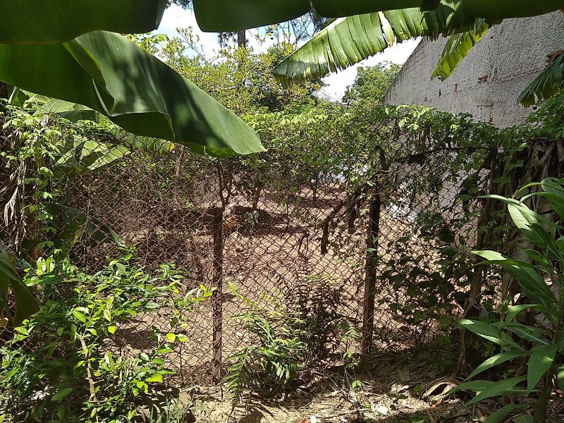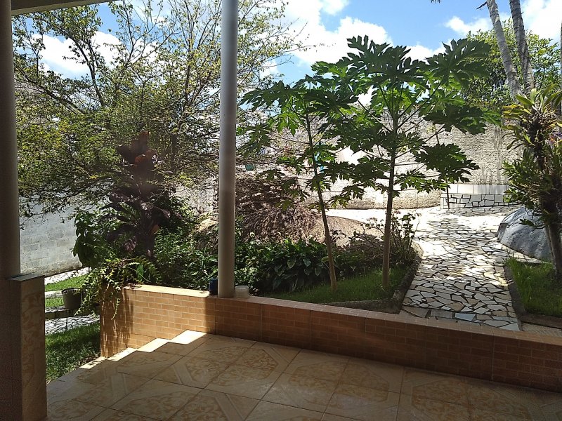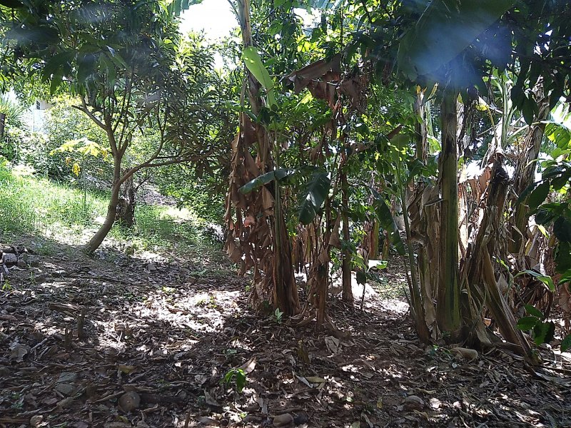 Área externa, com terreno e arvore frutiferas.
