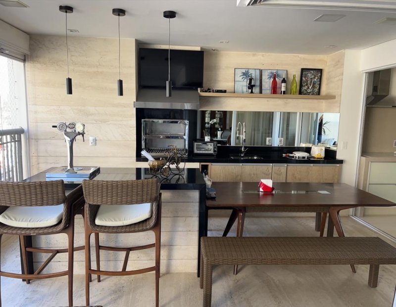 Apartamento primeiro andar, sala com ambientes espaçosos, varanda gourmet com churrasqueira, cozinha americana, 03 dts suítes, sendo uma máster com banheira, 01 lavabo, 01 dependência de serviço com banheiro. 04 vagas na garagem coberta.